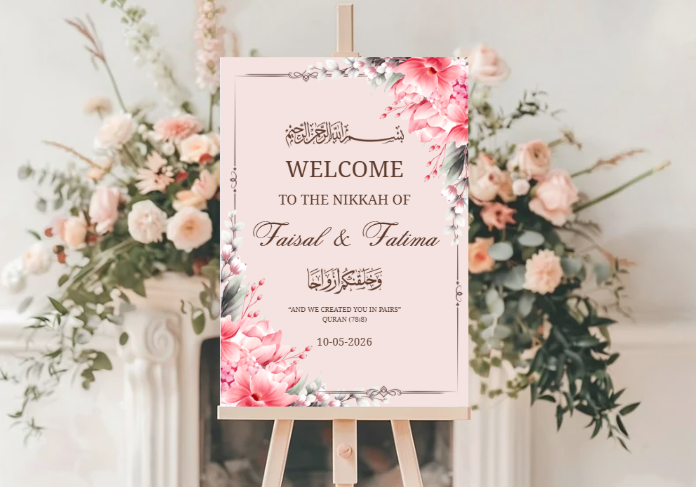 Elegant Pink Floral Nikkah Welcome Board